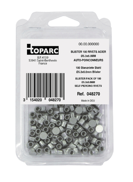 • 100 REBITES DE AÇO AUTOPERFURANTES Ø5,3x6,0MM - EMBALAGEM BLISTER