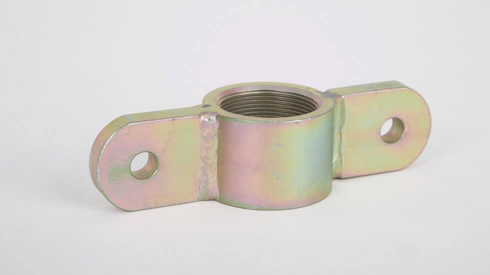 Peça metálica cilíndrica com abas e furos