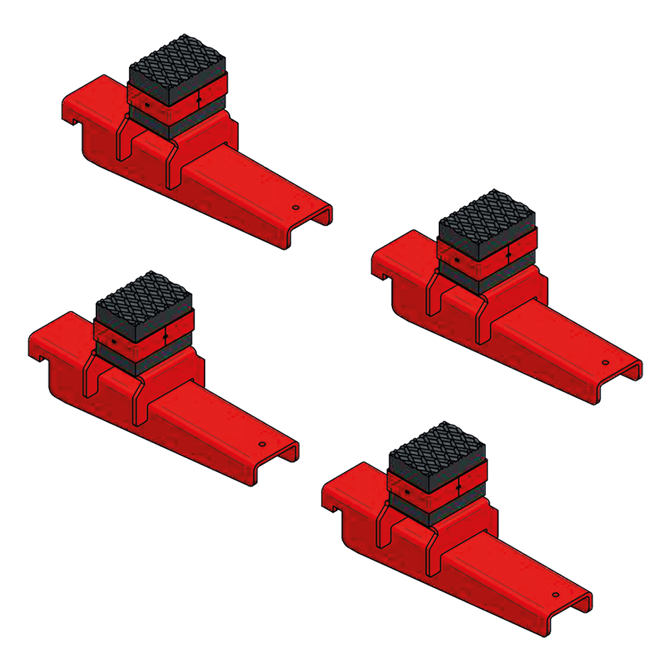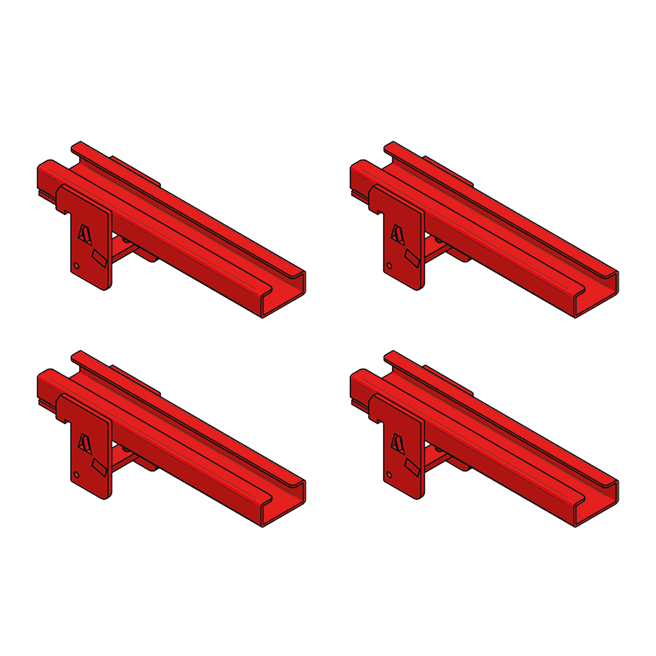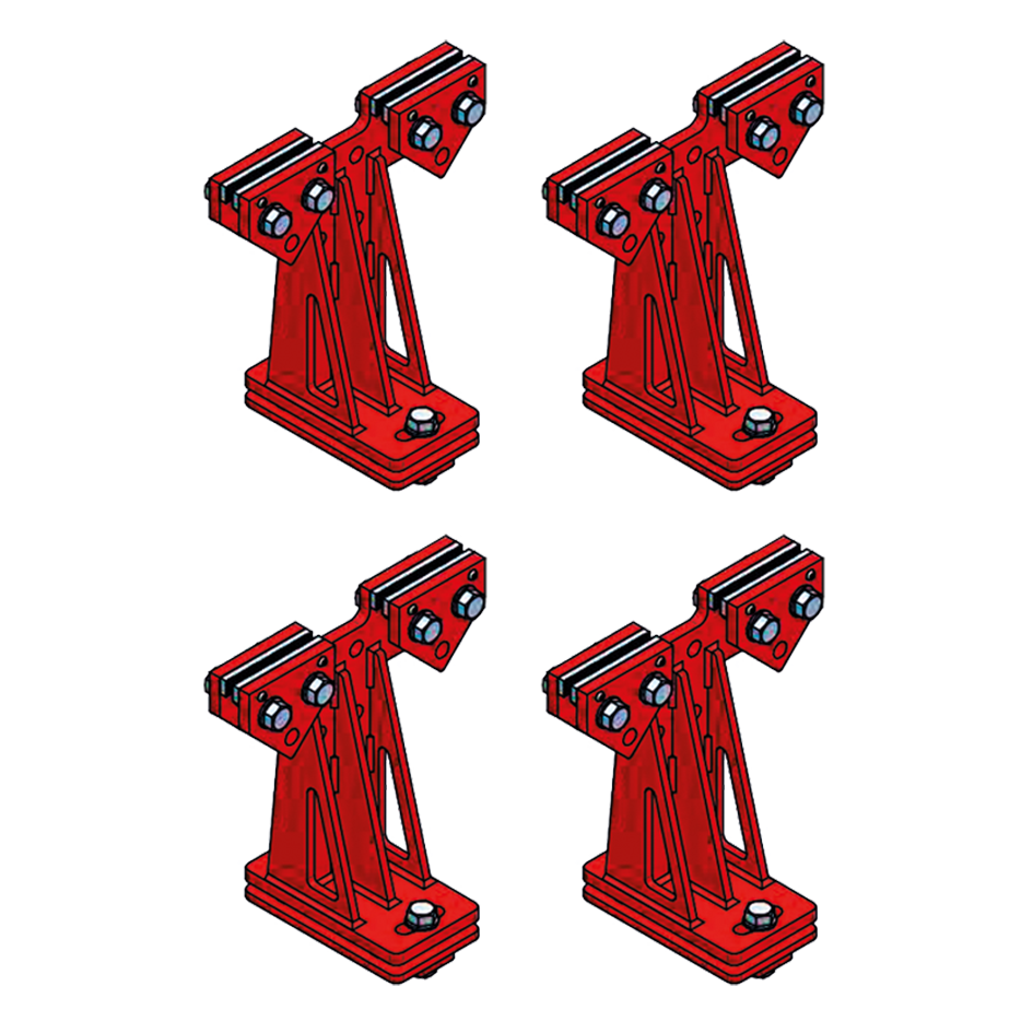 Quatro suportes metálicos vermelhos com base para fixação e número 4