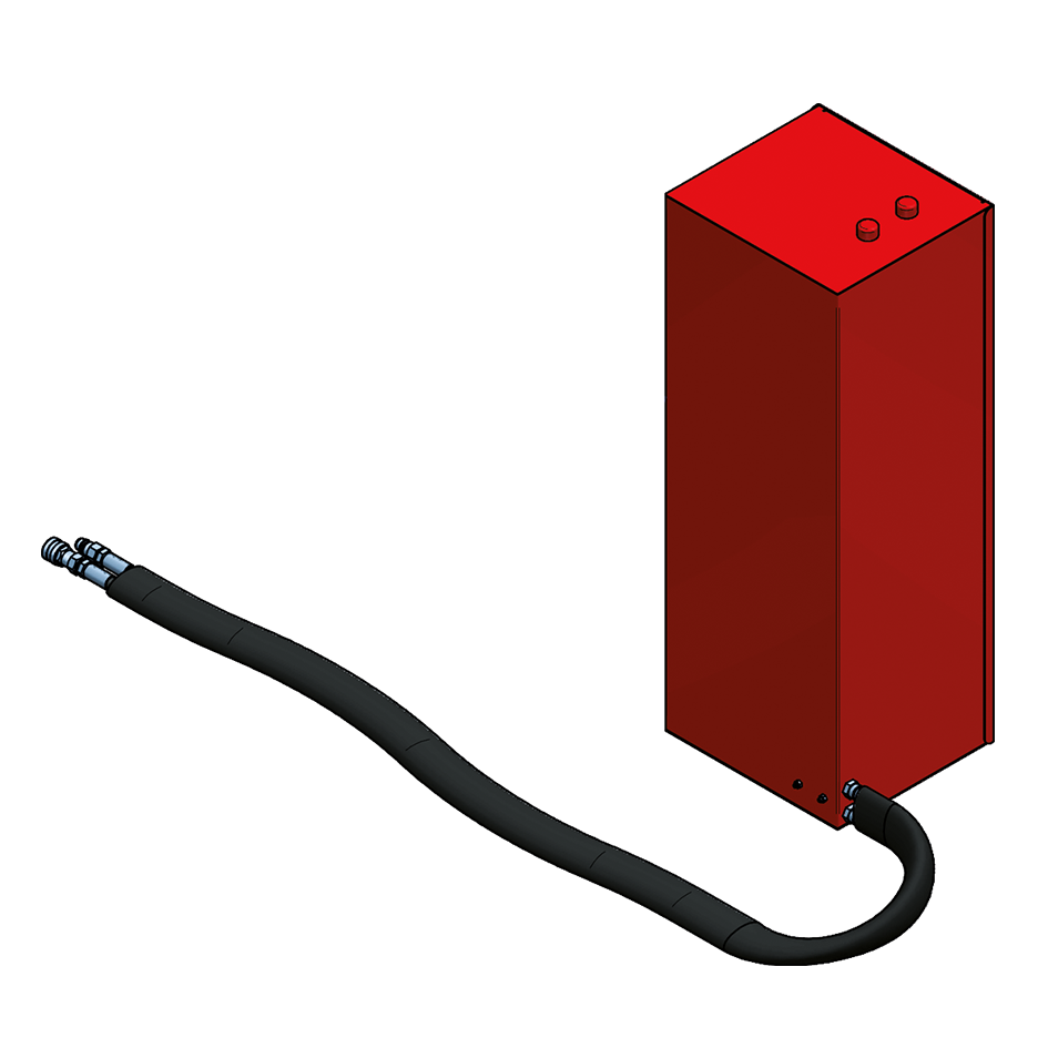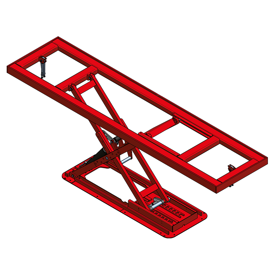 Estrutura metálica elevatória vermelha em formato retangular com braços cruzados e base sólida
