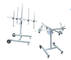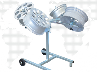 O cavalete 309C, utilizando os sistemas apropriados, possibilita o bloqueio seguro das jantes e capons portas dos carros nas várias etapas de processamento.