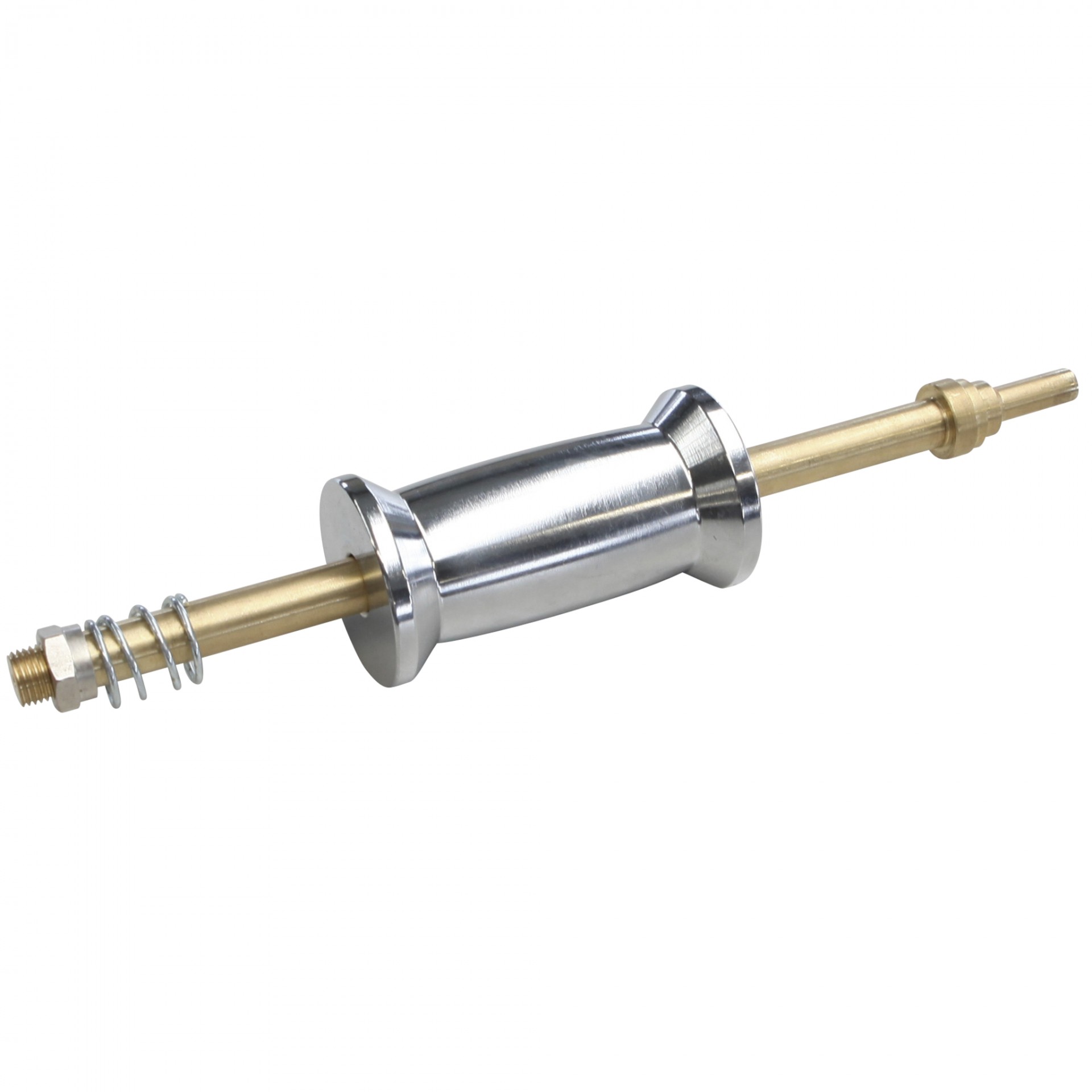 Componente metálico com eixo de latão, mola e peça cilíndrica cromada