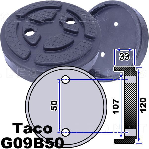 Taco de borracha redondo grosso com dois furos, para elevadores de coluna. Distância entre os eixos dos dois furos: 50 mm. Compatível com suprimentos DAMA, Martech Car...