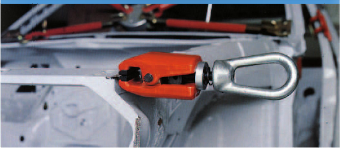 Os grampos do Autoblock permanecem travados no painel de metal sem aplicar força de tração. Mandíbulas mutáveis em aço temperado especial para longa vida útil.