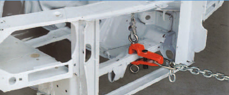 Graças ao seu sulco profundo, este grampo de puxar é particularmente adequado para puxar peças de estrutura grossa.