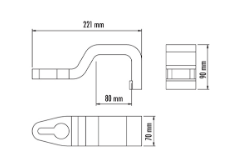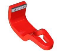 Peça plástica vermelha com superfície metálica e design ergonómico isolada no fundo branco