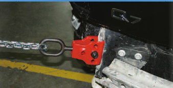 Garra vermelha com corrente presa a engate de reboque Q7 preto na traseira de veículo preto