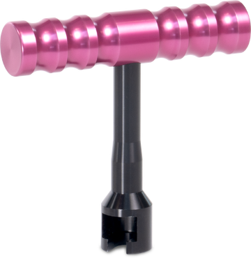 Chave T rosa metálica com haste preta isolada