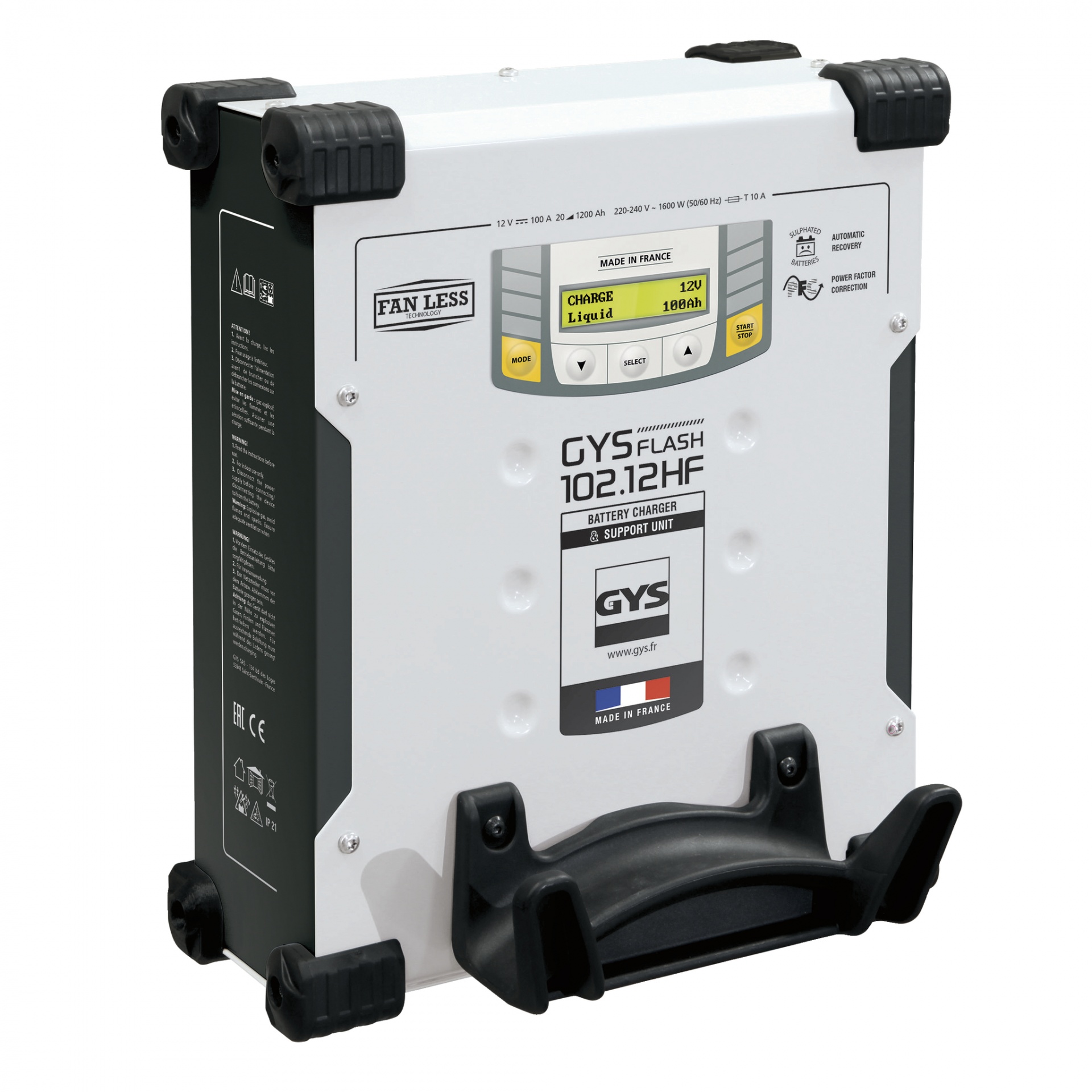 Especialmente projetado para montagem em parede ou elevador, o GYSFLASH vertical 102.12 é um carregador de alta potência de 100 A com tecnologia inverter. Ele mantém uma bateria de 12 V em uma tensão perfeitamente estabilizada durante as fases de diagnóstico. Além disso, garante a qualidade ideal da carga para a manutenção dos veículos mais avançados.