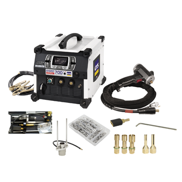 O gerador de soldagem por arco de tração GYSPOT ARCPULL solda todos os tipos de acessórios (anéis de tração, pinos, pinos de aterramento e pregos). Sua regulação de corrente secundária garante uma estabilidade de arco perfeita. A pistola ARCPULL é equipada com uma tecnologia de motor linear única no mercado.