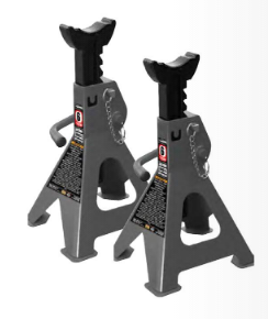 Conjunto de dois suportes para veículos metálicos cinza com detalhes pretos e rótulos