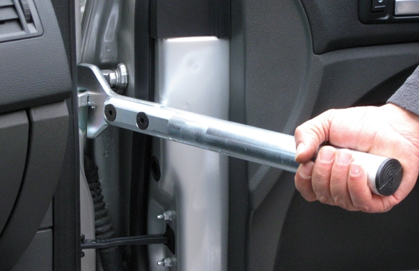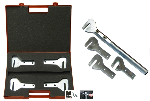 kit de chave de caixa para endireitar dobradiça soldada. Torna possível ajustar perfeitamente as dobradiças do carro, mesmo com a porta montada em posição em mais de 18 modelos de carros de 10 marcas diferentes.