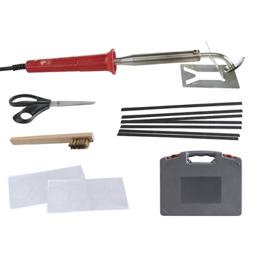 O conceito de reparo de solda é para derreter na massa, graças a um ferro elétrico e sua ponta especialmente projetada, uma fina malha de aço inoxidável 18/8 (ref 052949 - grade de aço inoxidável 25 cm x 12,5 cm).