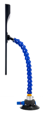 Suporte de monitor com braço flexível azul e base de ventosa preta