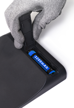 Compartimento de bateria aberta a mostrar bateria azul 3200mAh