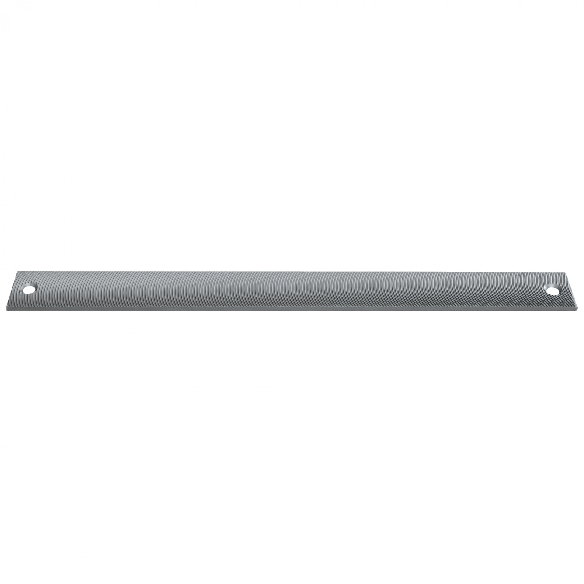 Barra metálica retangular cinza com orifícios nas extremidades