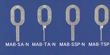 Sensores ovais prateados com identificação MAB em fundo azul