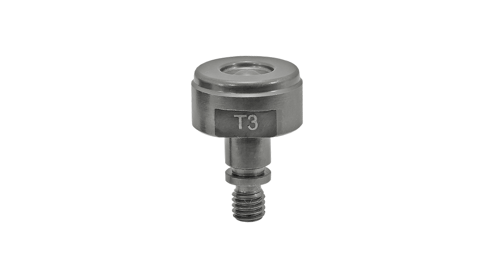 Peça metálica pequena com parafuso e etiqueta 'T3'
